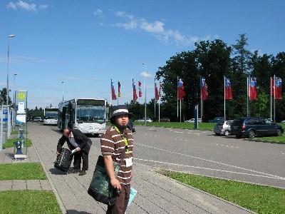 シャトルバスの発着所まで徒歩で行きます。