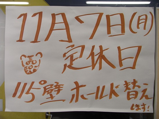 来月のホールド替えは115°です。登り残しのないよーに。