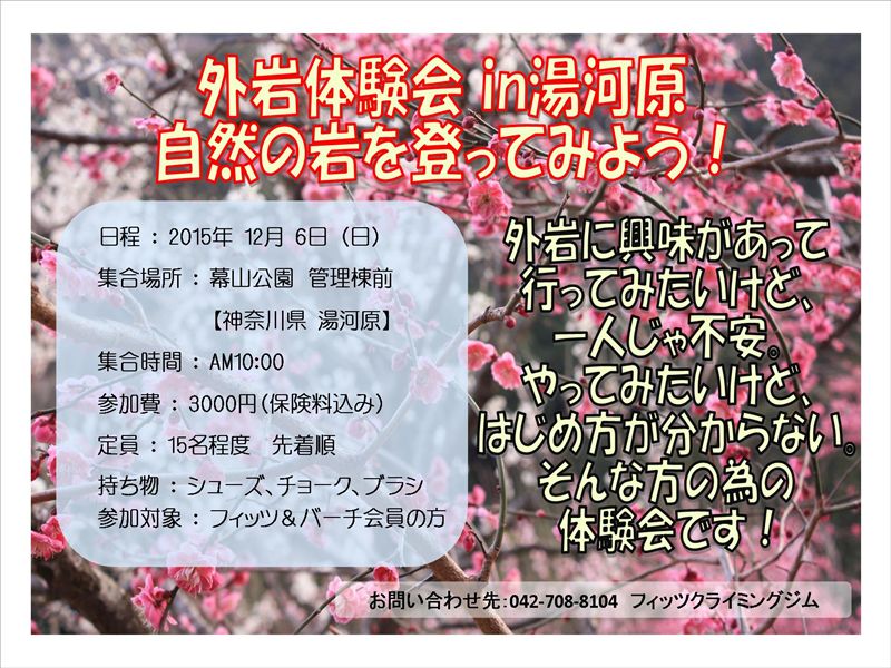 湯河原外岩体験会のお知らせ!!