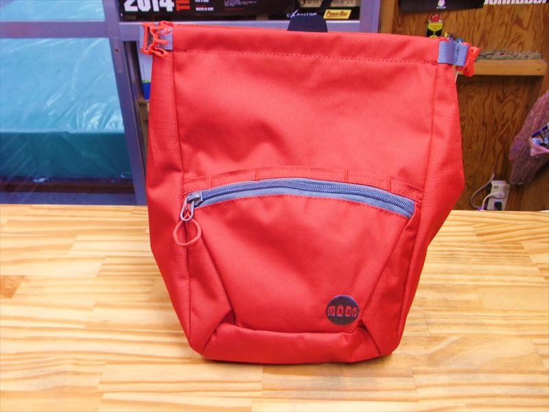 2015年新モデル。フロントポケットがジップタイプになり、小物の収納性が向上しています。液体チョーク、携帯、アクセサリー等小物なら大体なんでもいけてしまうくらいの収納性です。さらに軽く、耐久性も改良されています。収納時はベルクロ付きの口をくるくる巻いてストラップで留めるだけです。ブラシホルダー多数付いています。