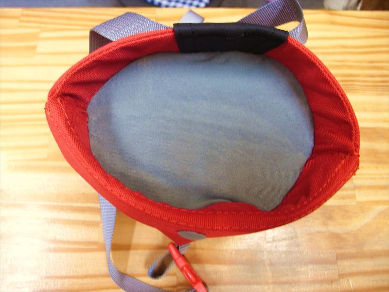 2015年新モデルが登場です。軽く耐久性があり、さらにボタン式の新しいクロージングシステムはチョーク漏れがなく収納時にも安心です。↑の写真の通りしっかり上部が密閉されています。内側底部は手触りが最高のフリース生地を使用しています。重量:約120g